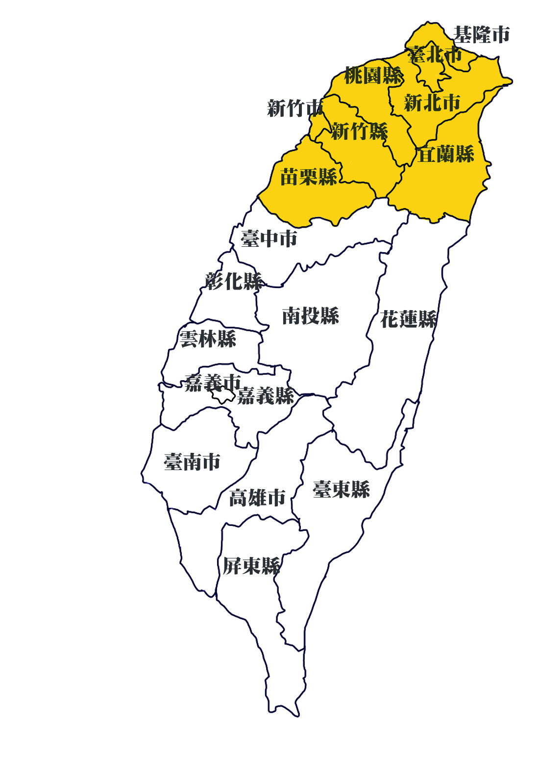 仁愛區、中正區、信義區、中山區、安樂區、暖暖區、七堵區 |